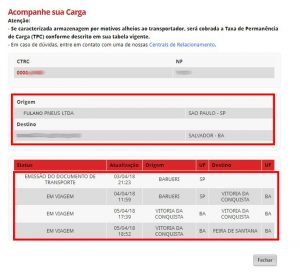 Na página verifique as informações de remetente e destinatário e localização da carga