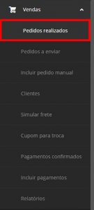 Vá para a opção “Vendas” e “Pedidos realizados”