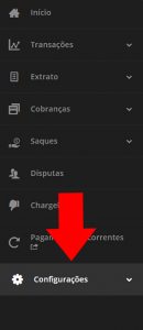 No menu lateral esquerdo da Yapay, clique em “Configurações”