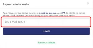 Na tela de login, clique em “Esqueci minha senha” logo abaixo;