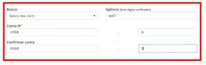 Logo abaixo, preencha com suas informações bancárias (agência, conta, digito da conta e confirme a conta e digito);