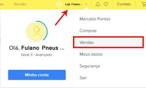 Na parte superior direita, passe o mouse sobre o nome da loja e clique em “Vendas”