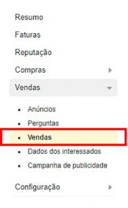 Para verificar ou enviar mensagens. Acesse a opção “Vendas” no painel esquerdo da página
