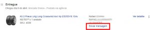 Localize a venda/produto que deseja enviar a mensagem para o cliente e clique em “Enviar mensagem”